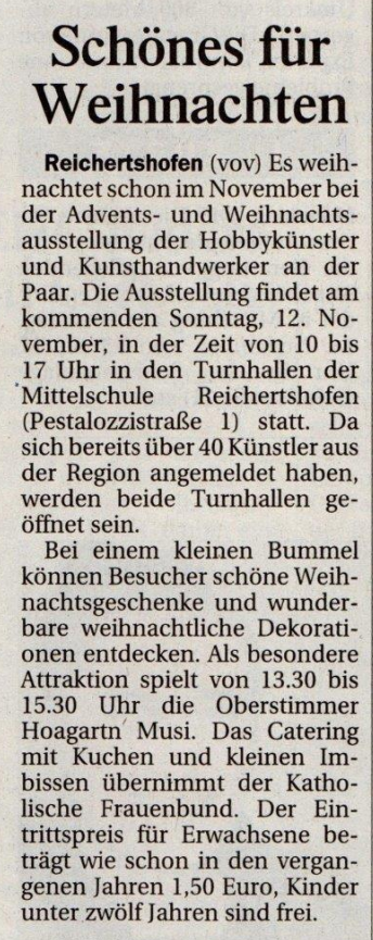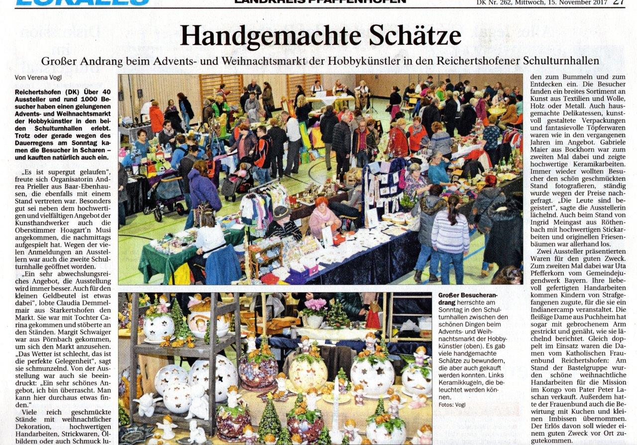 „Advent- und Wintermarkt“ am Sonntag, den 12. November 2017, in Reichertshofen
