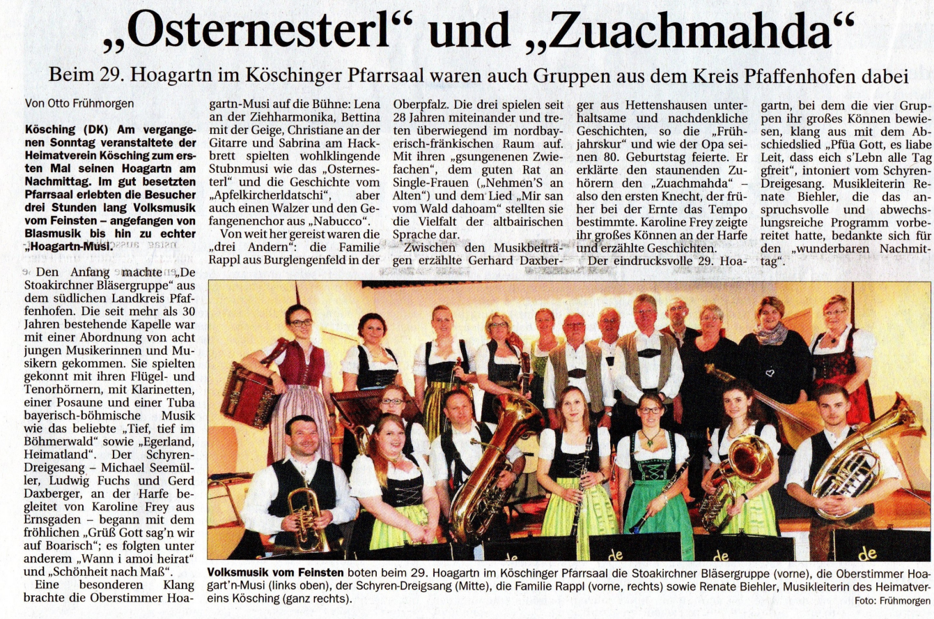 (vgl. http://www.hallertau.info/index.php?StoryID=324&newsid=91407 11.10.2015)„Hoagart’n“ am Sonntag, den 07. Mai 2017 in Kösching